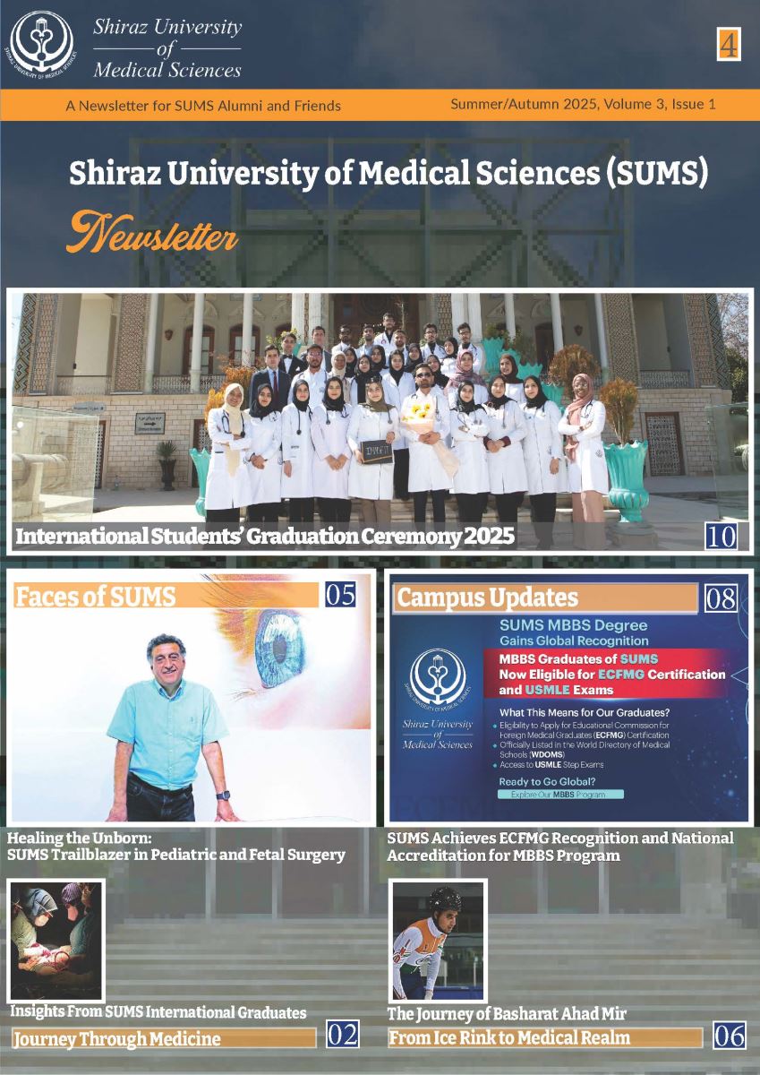 Stay connected with SUMS community through our newsletter. We are delighted to bring you an exciting blend of content showcasing the vibrancy and excellence of our university community. In our newsletter, you’ll find messages from our students, providing a glimpse into their academic journeys and aspirations. Dive into compelling campus stories that capture the essence of life at SUMS, along with a roundup of recent events that have enriched our academic calendar. Explore the achievements of our students, faculty, and alumni, and discover how we continue to make strides in healthcare and education.